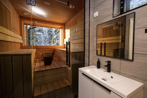 这家度假屋的客人可以使用桑拿浴室。Näköalahuoneisto Iso-Syöte Ketunpolku配备水上运动设施、滑雪通行证售票处和滑雪至门口雪道。
