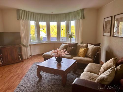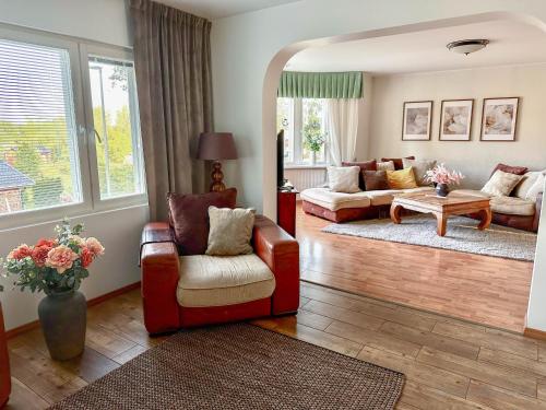 这家别墅提供露台,享有花园景,拥有4间卧室、起居室、平板电视、带冰箱和洗碗机的设施齐全的厨房以及2间带淋浴设施的浴室。这家别墅还配备休息区、洗衣机以及2间带免费洗浴用品的浴室。