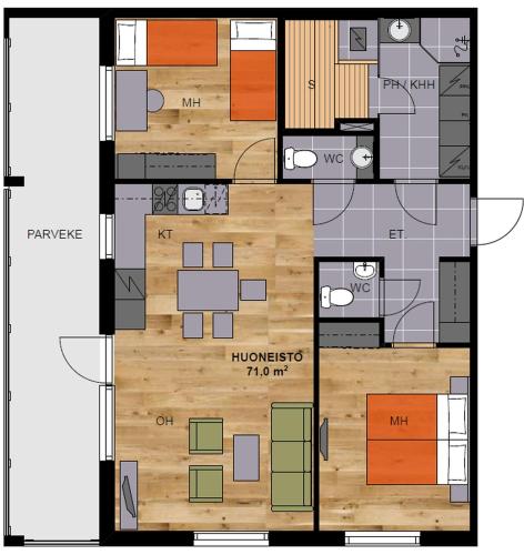 Located within 2.9 km of SuperPark Vuokatti and 34 km of Kajaani Train Station, Vuokatin Aateli Royal provides rooms with air conditioning and a private bathroom in Vuokatti. Guests staying at this apartment have access to a balcony. There is a terrace and guests can make use of free WiFi, free private parking and an electric vehicle charging station.