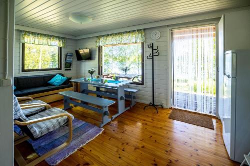 Villa Lilla, Sorjosen lomamökit位于Sulkava,距离萨翁林纳火车站有45公里。客人可以使用桑拿房。这家住宿坐落于海滨,拥有花园、私家海滩和露台。