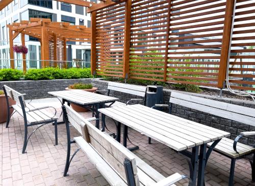 这家公寓享有市景,提供露台,配有1间卧室、起居室、有线频道平板电视、设施齐全的厨房以及1间带坐浴盆和淋浴设施的浴室。这家公寓还配备休息区、洗衣机以及1间带吹风机的浴室。