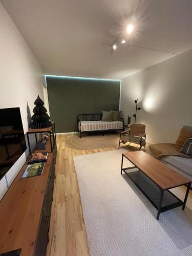 这家公寓配有1间卧室、起居室、带冰箱和咖啡机的设施齐全的厨房以及1间带坐浴盆和淋浴设施的浴室。这家公寓还配备休息区、洗衣机以及1间带吹风机的浴室。
