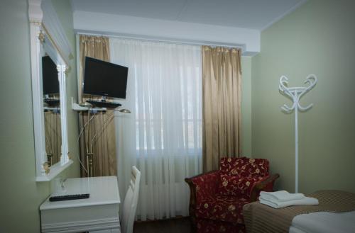 Hotel Golden Dome Iisalmi酒店提供标配的平板电视、办公桌以及带淋浴和吹风机的私人浴室。部分客房提供私人桑拿浴室。