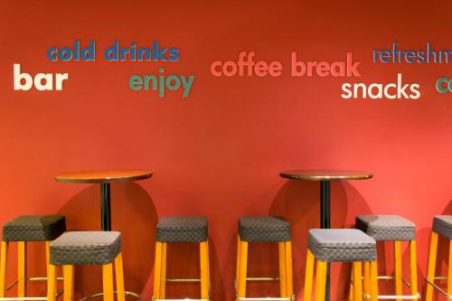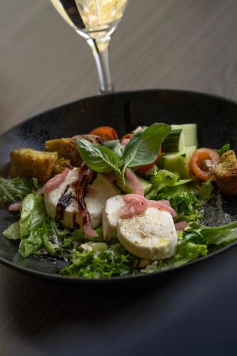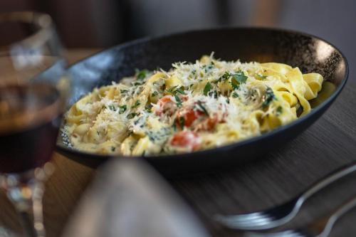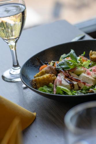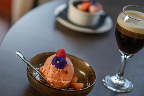 The on-site à la carte restaurant offers international cuisine and views of the pond. Guests can also relax with a drink or snack in the lobby bar or on the terrace during warm months.