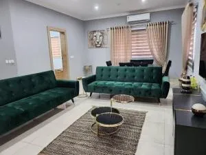 Douglas Luxury Apartments At The Greens C25 Tema位于Greater Accra的特马,配有阳台。这家空调住宿距离克瓦米·恩克鲁玛纪念公园有36公里,为客人提供免费WiFi,内部提供私人停车位。 这家度假屋配备3间卧室、带冰箱和烤箱的厨房以及2间带浴缸、免费洗浴用品和洗衣机的浴室。这家度假屋还提供平板电视以及2间带浴袍的浴室。 这家度假屋距离独立拱门有37公里,距离Sakumo Lagoon Protected Area有13公里。科托卡国际机场距离住宿有26公里。 更多