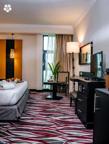 Grand Lancaster Brazzaville位于布拉柴维尔,距离皮尔·萨沃格纳恩·代·布拉扎纪念馆有9分钟步行路程,提供户外游泳池、免费私人停车位、健身中心和花园。这家住宿配有餐厅,还提供露台、桑拿房和热水浴池。住宿为客人配备客房服务和24小时前台。