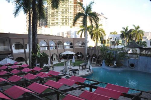 All rooms come with a flat-screen TV. Some rooms have a seating area where you can relax. Certain rooms feature views of the pool or city. Each room comes with a private bathroom with a hot tub and bath, with bathrobes, slippers and free toiletries provided.