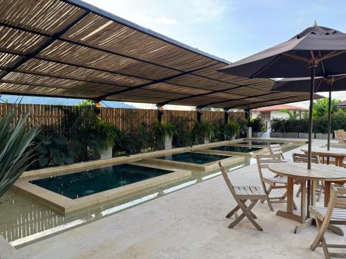 Finca del Café - Casa Bourbon坐落于圣罗莎德卡瓦尔,配备露台以及免费WiFi,还为驱车前来的客人提供免费私人停车位,距离Ukumari Zoo有不到33公里,距离Viaduct between Pereira and Dosquebradas有17公里。这家经济型酒店的每间房间都享有花园景。客人可以使用热水浴池。住宿为客人提供客房服务和旅游咨询台。