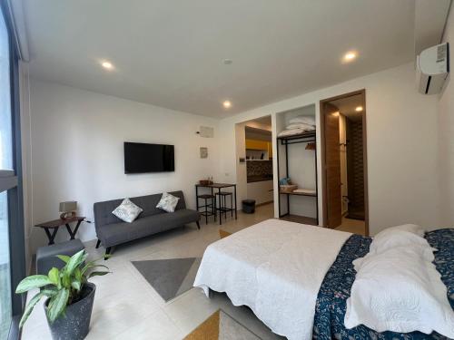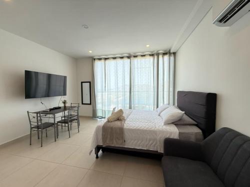 Edificio Salinas del Mar坐落于圣玛尔塔,距离托尔图加角海滩(Playa Cabo Tortuga)有8分钟步行路程,距离贝洛奥里藏特海滩(Bello Horizonte)有不到一公里,配备免费WiFi和空调。客人可以使用带室外泳池的花园。内部提供私人停车位。