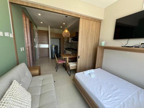 每间房间都提供露台、带冰箱的厨房、用餐区和平板电视。私人浴室配有浴缸或淋浴设施。