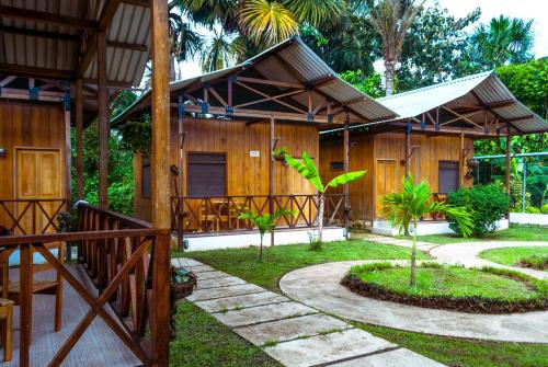 Hotel Utüane酒店的简易别墅提供双人间、三人间或家庭间住宿。所有住宿均配有平板电视、迷你吧、私人浴室、吊扇以及带休闲吊床的露台。部分简易别墅还提供享有泳池景致的阳台。