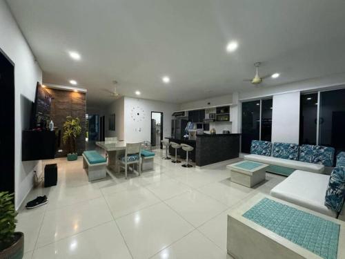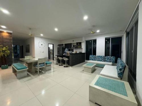 这家度假屋配备4间卧室、4间浴室、床上用品、毛巾、带卫星频道的平板电视、用餐区、设施齐全的厨房以及池景露台。这家度假屋提供空调,也为客人提供4间带淋浴设施和洗衣机的浴室。