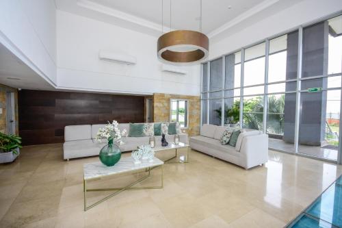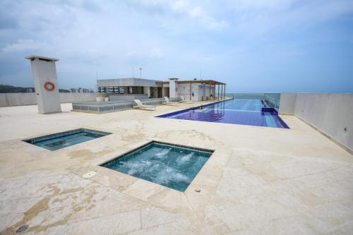 APARTAMENTO OCEAN DRIVE 410 CARTAGENA坐落于卡塔赫纳,距离拉贝克拉海滩(La Boquilla Beach)仅有不到一公里,配备户外游泳池、健身中心、露台和免费WiFi。这家公寓提供免费私人停车位和24小时前台。