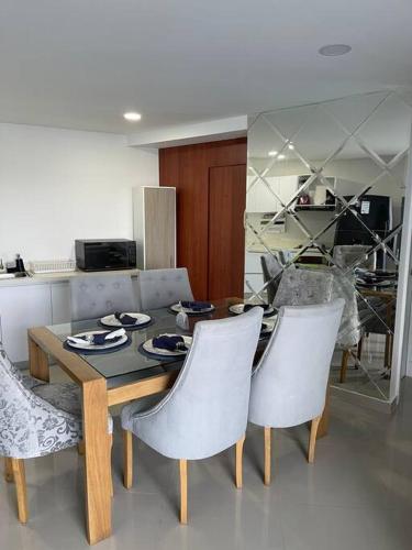 Apartamento Lujoso Isla Taormina坐落于卡塔赫纳的海滨,拥有私人海滩,靠近拉贝克拉海滩(La Boquilla Beach)。这家空调住宿距离克雷斯波海滩(Crespo Beach)有8分钟步行路程,为客人提供免费WiFi,内部提供私人停车位。