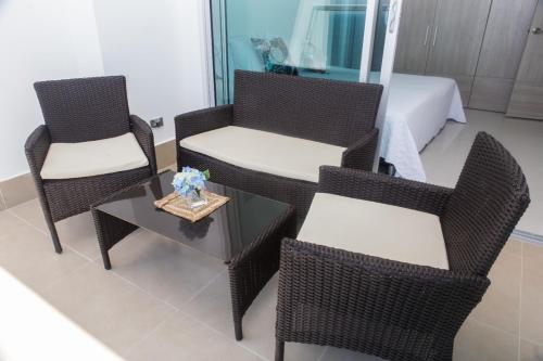 房间配有露台、空调、平板电视以及带坐浴盆的私人浴室。