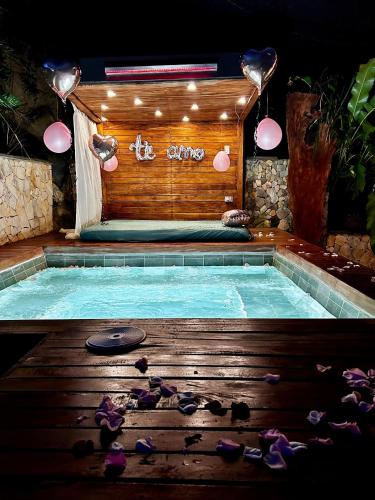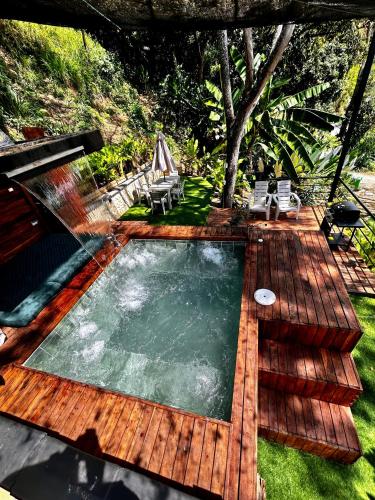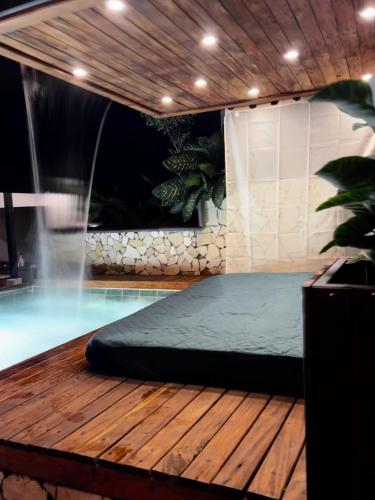 Cabaña Cedro Amarillo - moderna con jacuzzi en Sopetran, cerca de Medellín位于索佩特兰,距离卡纳洛亚水上乐园有15公里,距离劳莱勒斯公园有49公里,提供免费WiFi、户外游泳池和空调。这家自助式度假屋配有私人泳池、花园和免费私人停车位。