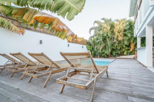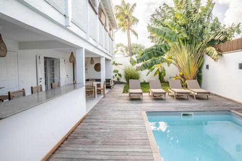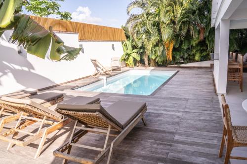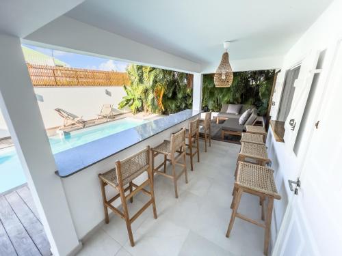 Luxe Piscine et Plage位于圣弗朗索瓦,配备带免费WiFi的池景客房,配有户外游泳池、花园和私家海滩。这家住宿距离安斯罗切海滩(Anse des Rochers Beach)有14分钟步行路程,提供露台和免费私人停车位。