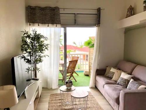 Charmant appartement vue mer la marina位于圣弗朗索瓦,配备带免费WiFi的海景客房,配有花园和露台。
