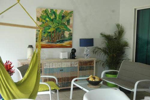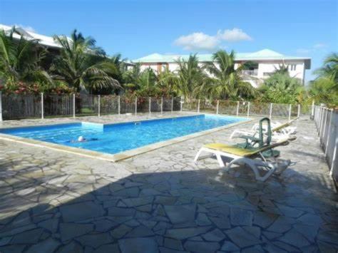 Appartement bord de mer享有池景,提供户外游泳池和阳台,距离葡萄干克莱尔海滩(Raisins Clairs Beach)约有几步路。这家自助式公寓拥有私人泳池、花园和免费私人停车位。