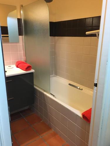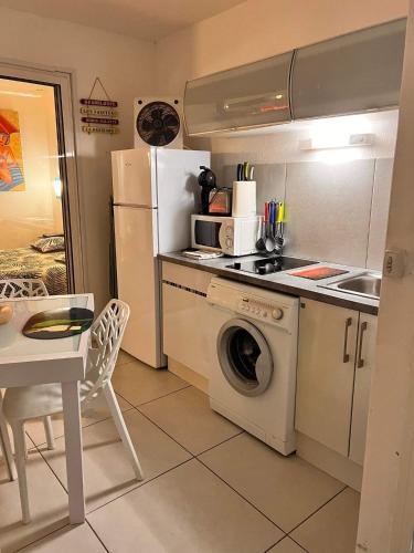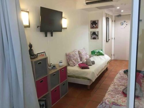 这家空调公寓配有1间卧室、起居室、带冰箱和咖啡机的设施齐全的小厨房以及1间带浴缸和吹风机的浴室。这家公寓也配有1间浴室。