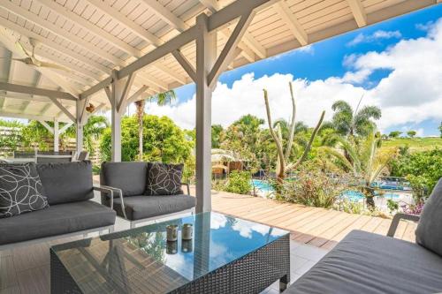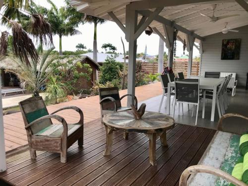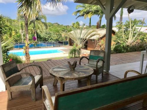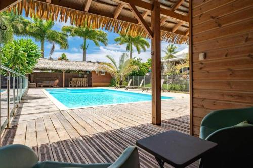 Villa Tikitanga avec piscine 10X5m à 650m de la mer位于圣弗朗索瓦,提供带免费WiFi的池景客房,配备户外游泳池、花园和露台。这家住宿距离葡萄干克莱尔海滩(Raisins Clairs Beach)有不到一公里,配备酒吧和免费私人停车位。