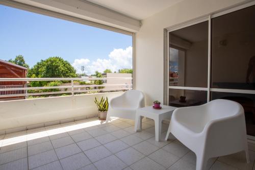 Appartement les pieds dans l'eau位于圣安尼,距离圣安妮海滩(Sainte Anne Beach)有几步路,距离拉卡拉维尔海滩(La Caravelle Beach)有14分钟步行路程,提供免费WiFi、露台和空调。这家住宿享有市景和海景。
