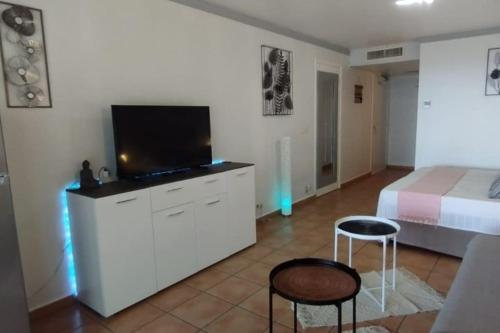 这家空调公寓配有1间卧室、起居室、带冰箱和咖啡机的设施齐全的厨房以及1间带淋浴设施和吹风机的浴室。这家公寓也配备休息区和1间浴室。