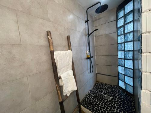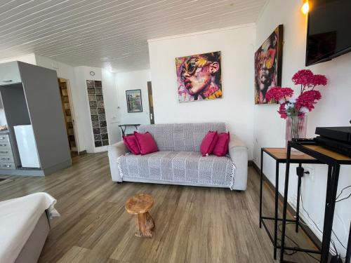 这家空调公寓配有1间卧室、起居室、带冰箱和咖啡机的设施齐全的厨房以及1间带淋浴设施和吹风机的浴室。这家公寓也拥有休息区和1间浴室。