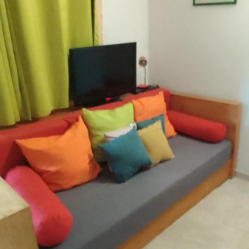 这家空调公寓配有1间卧室、起居室、带冰箱和咖啡机的设施齐全的厨房以及1间带淋浴设施的浴室。这家公寓也配有休息区和1间浴室。