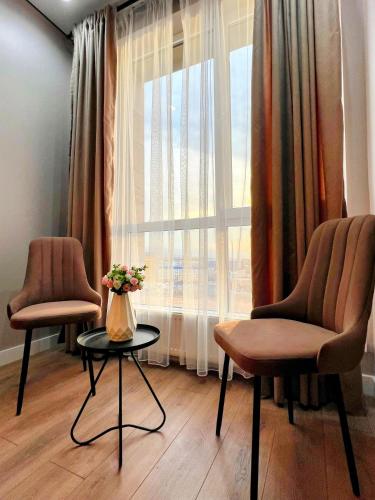 Просторный люкс с шикарным видом位置很好,位于Baganashyl,配有儿童游乐场和ATM取款机,距离First President of Kazakhstan Park有1.9公里,距离阿塔肯特博览馆有3.7公里。这家公寓享有市景和山景,也配有免费WiFi。