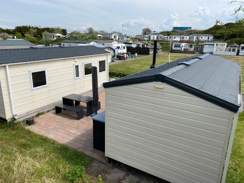 这家小木屋配有2间卧室、起居室、带冰箱和电热水壶的设施齐全的厨房以及1间带淋浴设施的浴室。这家小木屋也拥有休息区和1间浴室。