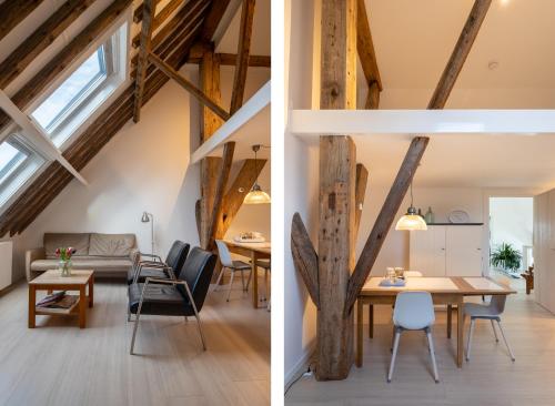 这家公寓配有1间卧室、起居室、带冰箱和咖啡机的设施齐全的厨房以及1间带淋浴设施和吹风机的浴室。这家公寓也提供休息区和1间浴室。