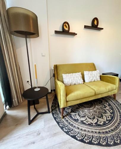 这家公寓配有1间卧室、起居室、带冰箱和咖啡机的设施齐全的厨房以及1间带浴缸或淋浴设施和吹风机的浴室。这家公寓也提供休息区和1间浴室。