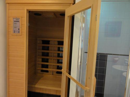 The bathroom has a shower and double sinks. There is also sauna for which the costs depend on the type of booking.