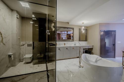 这家公寓拥有露台、4间卧室、4间浴室、设施齐全的厨房、平板电视和热水浴池。这家公寓也配备4间浴室。
