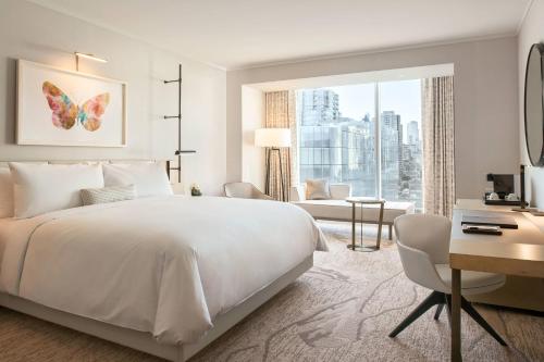 The JW Marriott Parq Vancouver boasts elegant, spacious rooms, including a seating area. The hotel also offers Internet TV, Wi-Fi, a mini-fridge, air-conditioned rooms, and coffee and tea making facilities. Room service is available 24/7. Some rooms provide views of False Creek, while others offer city and stadium views.