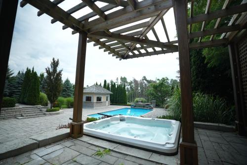 这家别墅享有池景,铺有镶木地板,配有7间卧室以及6间带浴缸和免费洗浴用品的浴室。这家空调别墅还提供平板电视、带冰箱的设施齐全的厨房、休息区、洗衣机以及6间带坐浴盆、淋浴设施和热水浴池的浴室。