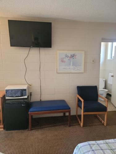 Olympia Motel rooms include a work desk and seating area. The rooms are equipped with cable TV.