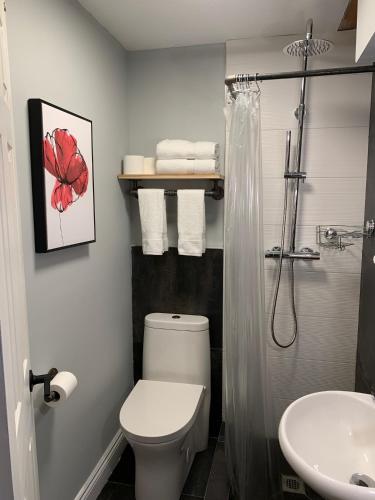 部分房间提供带淋浴设施、免费洗浴用品、吹风机和浴袍的私人浴室。