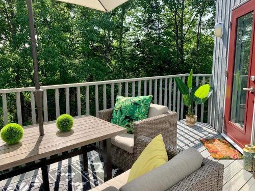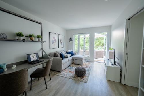 Le Rétro Chic à Mont-Tremblant坐落于魁北克省的蒙特朗布朗,拥有阳台,享有山景。这家住宿距离蒙特雷布兰特娱乐城有6.3公里,配备露台和免费私人停车位。