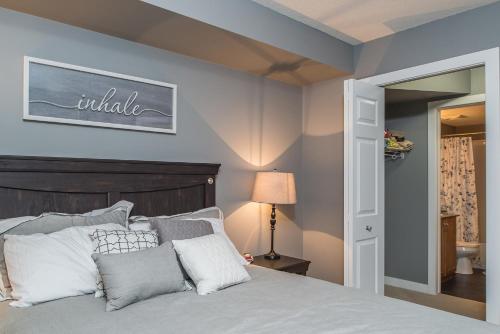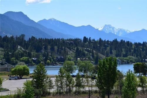 Modern Cozy 2 Bed 2 Bath with Lake and Mountain Views Pool and Hot Tub坐落于不列颠哥伦比亚省的因弗米尔,拥有露台,享有山景。这家公寓配有免费私人停车位。客人可以在周边地区体验徒步和垂钓等活动。