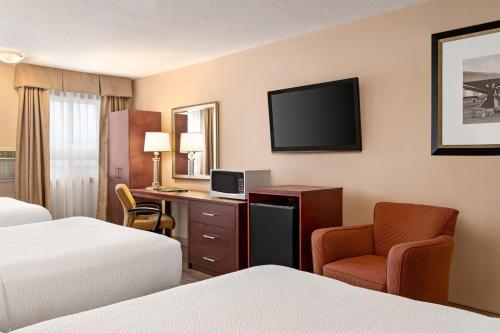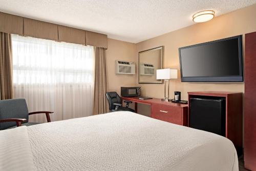 Days Inn by Wyndham Fredericton酒店的每间空调客房均配有有线电视和书桌,可应要求提供额外收费的微波炉。