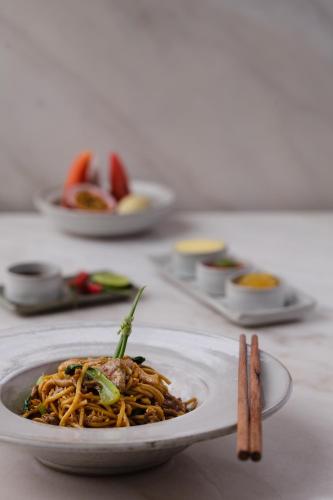 Guests can savor a variety of Asian, Western, and international cuisines at the in-house Goat Tree Garden Restaurant, while refreshing cocktails, local beers, and a selection of wines are available at the bar. For relaxation, indulge in rejuvenating signature treatments at Season Spa, or unwind by the stunning outdoor swimming pool and rooftop infinity pool. A well-equipped fitness center ensures a balanced and revitalizing stay.