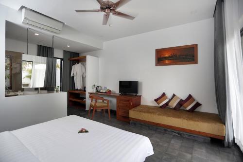 Sam So Boutique Villa坐落于暹粒,距离吴哥国王路有8分钟步行路程,配备户外游泳池、免费私人停车位、花园和餐厅。这家舒适型酒店的每间房间都享有池景。客人可以使用热水浴池。住宿提供24小时前台、机场交通服务、客房服务以及免费WiFi。