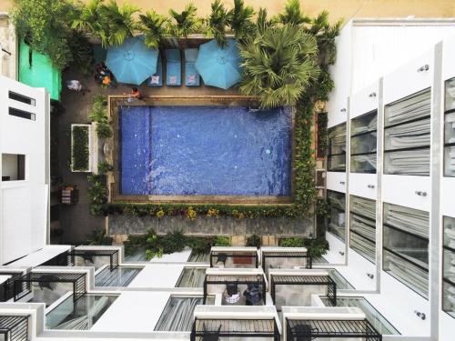 Situated in Siem Reap, 1 km from Pub Street, CENTRAL BLANCHE Residence features accommodation with a restaurant, free private parking, an outdoor swimming pool and a bar. Each accommodation at the 4-star hotel has pool views, and guests can enjoy access to a shared lounge and to a garden. The accommodation offers a 24-hour front desk, room service and currency exchange for guests.