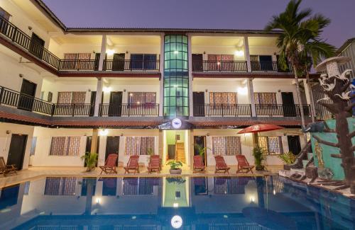 Lotus Bleu Guest House坐落于Phumi Ta Phul,距离吴哥国王路有不到1.8公里,配备礼宾服务、禁烟客房、花园、免费WiFi以及露台。这家旅馆配有酒吧,靠近多个著名的景点,距离柏威夏以及春景寺庙约16分钟步行路程,距离柬埔寨大皇宫有1.4公里,距离工匠吴哥有16分钟步行路程。这家旅馆提供室外泳池和24小时前台。