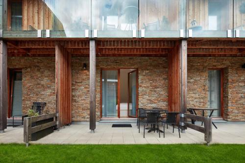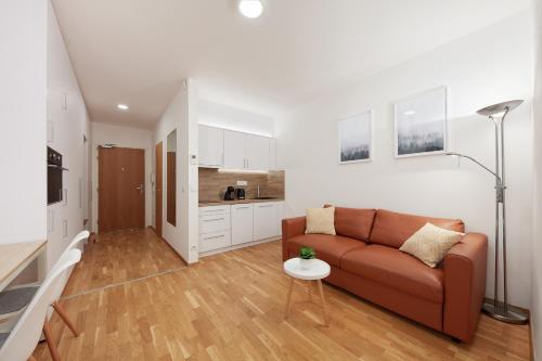 这家公寓提供露台,享有花园景,拥有1间卧室、起居室、平板电视、带冰箱和洗碗机的设施齐全的厨房以及1间带浴缸的浴室。这家公寓也配有休息区和1间浴室。
