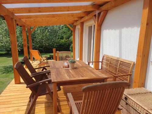 这家度假屋提供露台,享有池景,配有2间卧室、起居室、平板电视、带冰箱和微波炉的设施齐全的厨房以及1间带淋浴设施的浴室。1间浴室配有浴缸,也为客人提供吹风机,提供毛巾和床上用品。