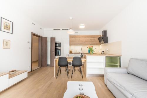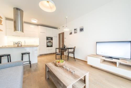 每间房间都配有露台、带冰箱的设施齐全的厨房、带沙发床休息区、平板电视、洗衣机以及带浴缸和吹风机的私人浴室。住宿还提供洗碗机、烤箱、微波炉和电热水壶。