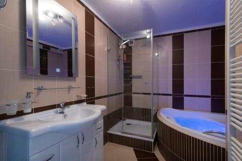 这家公寓的康体区提供桑拿房和热水浴池。